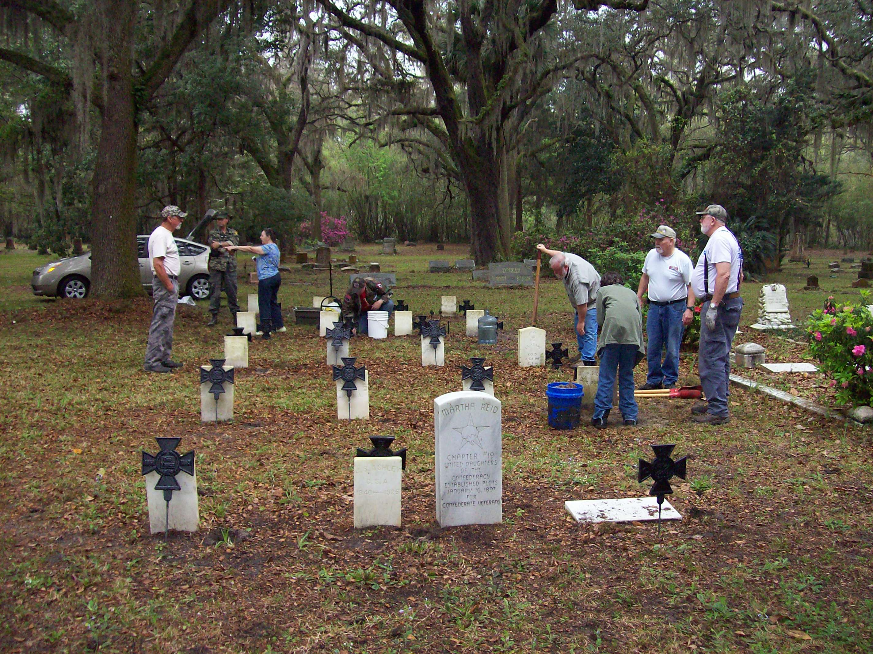 On March 19 2016, the Kirby-Smith Reaper went to Evergreen Cemetery and installed twenty Southern Crosses of Honor in the Martha Reid Chapter #19 Confederate burial plot. This is in preparation of Confederate Memorial Day that will be held in Evergreen Cemetery on April 23, 2016.