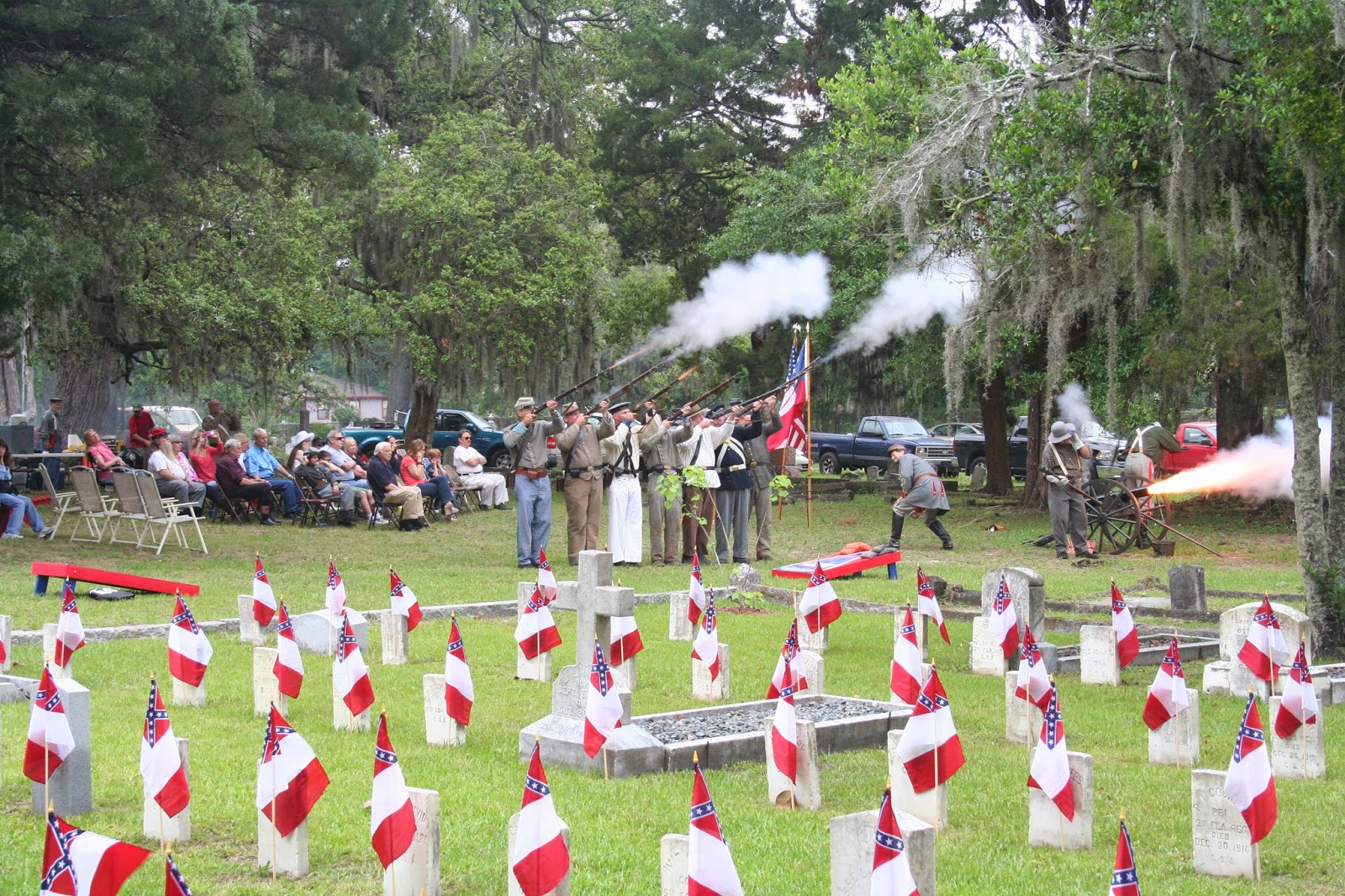 Kirby-Smith Camp #1209 held its annual Confederate Memorial Day service at Old City Cemetery. Commander Calvin Hart spoke on past CMD services that had been held in Jacksonville. The color guard did a salute with musket and cannon fire. A picnic was held after the service.